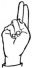 На ћирилици написано ТЕОФАН ПЕЦИЋ састоји се из 11 слова [?]. Исписано ћириличном једноручном азбуком за глувонеме: